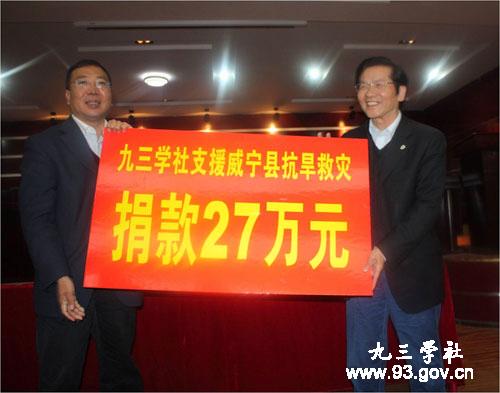 贺铿副主席代表九三学社向贵州威宁县捐赠抗旱救灾资金