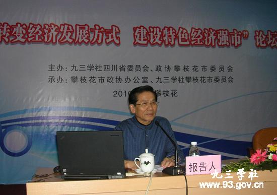 9月16日,由九三学社四川省委和攀枝花市政协联合举办的“转变经济发展方式,建设特色经济强市”论坛在攀枝花会展中心举行。九三学社中央副主席、全国人大财经委副主任贺铿论坛上作《转变经济发展方式,发展优势特色产业》的主题报告。