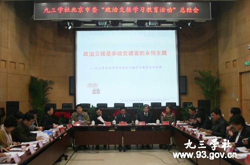 九三学社北京市委常务副主委王琳做了题为《政治交接是参政党建设的永恒主题》的总结报告。九三学社海淀区委,九三学社清华大学委员会,九三学社西城区市政路桥支社,九三学社丰台区首都医科大学支社,九三学社朝阳区北京工业大学支社分别做了经验介绍。