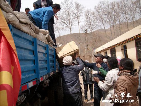 下午2点左右, 12吨蔬菜水果开进结古镇新寨九年一贯制学校和州民族二中。范增成、姜仲、常月宁、张进兴、闫醒春等跳上货车开始卸车,一麻袋洋芋、萝卜和白菜都有几十斤重,大家手拉肩扛,全然忘记了一天一夜的劳累。