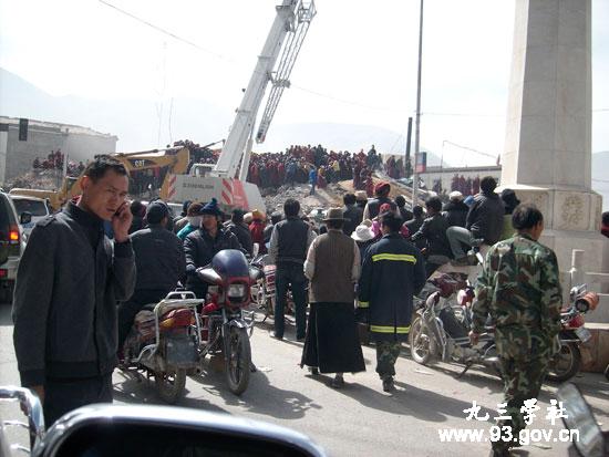 结古镇的一处处废墟上,解放军和志愿者们在瓦砾堆里全力搜寻着幸存者,更多的人排起长长的队伍,把砖头石块一块块搬离现场;公路上一辆面包车掉下路基,7、8个素不相识的藏族汉子用绳子把面包车套在自己的车上,又在后面用力推,拉出这辆面包车后,他们没说一句话便离开了现场。
