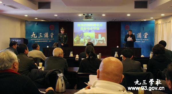 国防大学教授、军事史专家徐焰少将12月23日作客九三讲堂,做题为《我国的国防建设历程和安全环境》的演讲。九三学社中央主席韩启德出席讲座,讲座由九三学社中央副主席邵鸿主持。