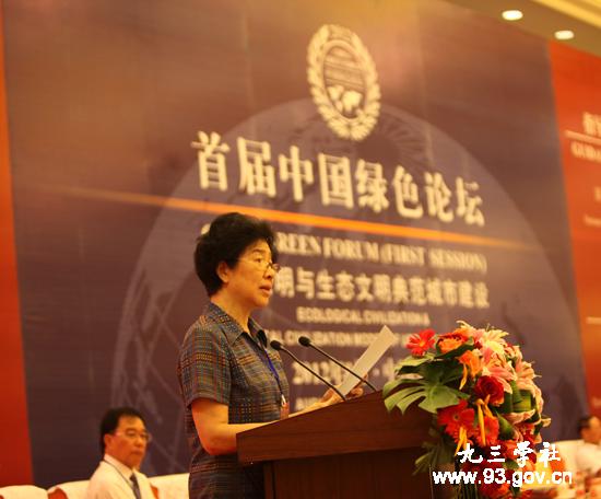 王志珍首先对论坛的召开表示祝贺,同时指出,本届论坛以“生态文明、绿色发展”为主题,旨在探讨全球文明向生态文明转型的重大理论问题,推动生态文明指标体系及战略性新兴产业研究,极富远见,也深具现实意义。党的十七大提出建设生态文明,赋予了科学发展观以崭新的内涵。生态文明追求人与人、人与社会、人与自然的和谐共生,是一个全面而系统的经济社会发展体系,对于匡正工业文明的局限与弊端、维护全球生态环境安全、推动人类文明进步意义重大。针对中国的复杂国情,大力发展生态文明,引导中国步入新的和谐富强美满的新时代,就是我们新时期的国家总体战略。她说,生态文明道路是中国实现可持续发展的正确选择,引领全球生态文明建设是我国实现伟大复兴的历史机遇。