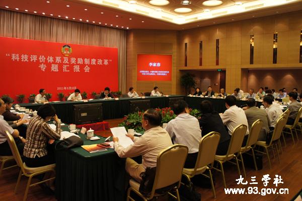 调研组还就“科技评价体系及奖励制度改革”听取了上海市的专题汇报。上海市副市长沈晓明汇报了上海科技评价体系及奖励制度改革总体情况,上海市科委、上海市教委负责人汇报了具体举措。