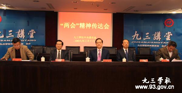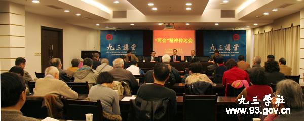 3月13日下午,九三学社中央召开学习会,传达十一届全国人大二次会议和全国政协十一届二次会议精神。九三学社中央主席韩启德出席会议并讲话。九三学社中央常务副主席陈抗甫出席会议。九三学社中央副主席贺铿、邵鸿分别传达了十一届全国人大二次会议和全国政协十一届二次会议精神。九三学社中央副主席赖明主持会议。