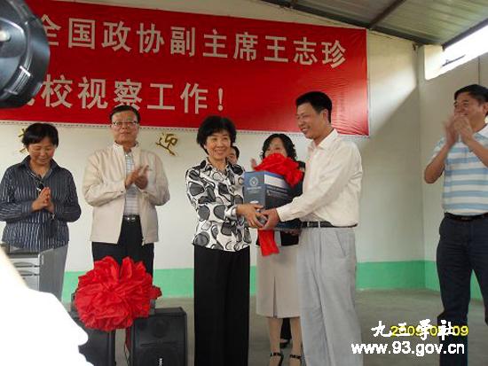 王志珍一行先后参观了学校陈列室、文体馆、学生宿舍、食堂等地,并转达了九三学社中央主席韩启德对全体师生的关怀和问候。她对学校的软、硬件设施表示满意,鼓励全校师生珍惜这么好的教学条件,认真“教”与“学”,不辜负社会各界人士的爱心馈赠。王志珍还代表九三学社中央、九三学社福建省委向学校赠送了音响器材、电脑。