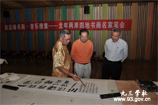 9月17日,九三学社中央文化工作委员会、宁波市文联、九三学社宁波市委员会联合举办的“秋实咏书画•音乐雅集——龙年两岸四地中华文化(书画•音乐)联谊活动”在宁波举行。当日上午,在宁波帮博物馆举行了两岸四地书画名家邀请展开幕式。全国人大常委会副委员长、九三学社中央主席韩启德院士为本次活动题词“弘扬优秀传统文化,增强中华民族自信”。全国政协常委、九三学社中央副主席冯培恩、邵鸿出席开幕式。