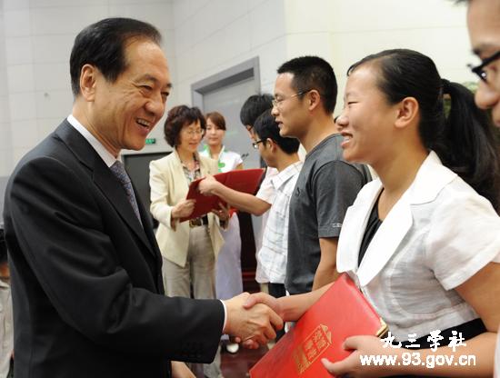全国人大常委会副委员长、九三学社中央主席韩启德与获奖学生等合影