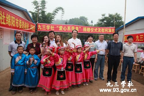 《风从羌山来》。在这首带有浓郁羌族特色的歌曲中,一场特别的慰问演出在四川省北川羌族自治县香泉乡中心小学拉开了序幕。这是九三人为灾区的孩子带来的节日礼物。