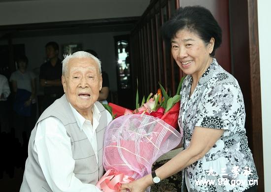 王志珍向杨敬年献上鲜花,对杨敬年在百岁高龄依然心怀祖国、努力工作的精神致敬。王志珍亲切地询问了杨敬年的工作和生活情况。她指出,杨敬年是九三学社的优秀代表。全国的九三学社社员都应该向杨老学习,要有向上的精神,不断为社会为国家做自己的贡献。
