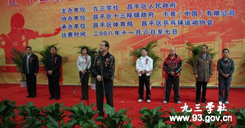 新农村建设农民乒乓球比赛暨“十三陵金果杯”2008年昌平区乒乓球比赛11月6日至7日在昌平区体育馆举行。全国人大常委会副委员长、九三学社中央委员会主席韩启德出席开幕式并为比赛开球。