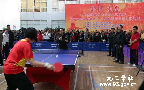 今年初,九三学社中央在北京市大兴区榆垡镇举办了以“和谐、发展”为主题的“新农村建设农民乒乓球比赛活动”启动仪式,标志着九三学社组织的“新农村建设农民乒乓球比赛”正式拉开帷幕。此后,九三学社各省、市级地方组织积极响应,目前已在全国六、七个省市举办了这项赛事,产生了很好的社会反响。九三学社中央将于明年适当时机在北京举办全国 “新农村建设农民乒乓球比赛”。