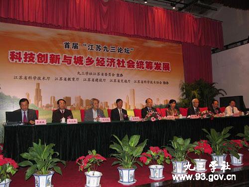 据悉,首届“江苏九三论坛”由九三学社江苏省委主办,江苏省科技厅、建设厅、交通厅、教育厅和科协协办。论坛以 “科技创新与城乡经济社会统筹发展”为主题,本着充分发挥九三学社科技优势,致力于有关科技创新与城乡经济社会统筹发展的理论、趋势、政策和策略选择、成功经验和发展模式等的探讨研究,以实现在科技创新体制机制上更大的创新突破,实现中共十七届三中全会提出的在农村改革发展新形势下,通过改革创新,大力推动城乡统筹发展,形成城乡经济社会发展一体化新格局,不断促进城乡经济社会共同繁荣的目标。