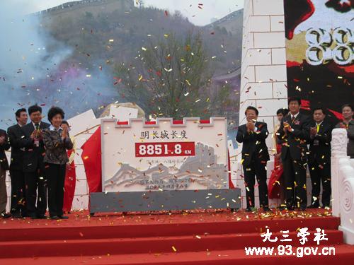 4月18日上午,由国家文物局、国家测绘局联合主办的“长城长•明长城长度数据发布仪式”在北京八达岭长城隆重举行。全国政协副主席、九三学社中央副主席王志珍出席发布仪式。