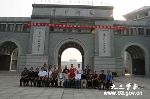 湖南第一师范与九三学社有着密切的关系。湖南第一师范在九三学社历史发展的两个重要阶段上都发挥了重要的作用。一是在九三学社筹建过程中,湖南第一师范有着密切的关系。毛泽东的同乡同学劳君展、黄国璋及张西曼及毛泽东在湖南第一师范的老师黎锦熙都是九三学社的创始人。特别是毛泽东在重庆谈判期间,勉励许德珩、劳君展把九三座谈会搞大,搞成一个永久性的政治组织。在毛泽东的关心鼓励下,九三学社正式成立了。因此,曾在湖南第一师范学习和工作过的毛泽东对九三学社的创立起了决定性作用。二是九三学社保留过程中,湖南第一师范起了特殊的作用。1949年5月,毛泽东驱车到和平门内的北京师范大学教工宿舍里看望他的老师、北师大文学院院长黎锦熙、同乡同学北平师范大学代理校长汤躁真(九三学社社员)、地理系主任黄国璋,以及同乡劳君展、许德珩夫妇。毛泽东还让工作人员从西单菜馆要了两桌酒席,宴请了在北师大工作的九三学社社员,成为九三学社流传的一段佳话。当毛泽东从黎锦熙处得知九三学社酝酿解散时,毛泽东派曾在湖南第一师范学习和工作过的中共中央统战部部长李维汉到九三学社,转达他不同意九三学社解散的意见,劝说九三学社不要解散。在中共中央、毛泽东、周恩来及李维汉等人的关怀、帮助和鼓励下,九三学社保存了下来。因此湖南第一师范在九三学社的创立、保留和发展的历史过程中有着密切的关系,起了特殊的作用。