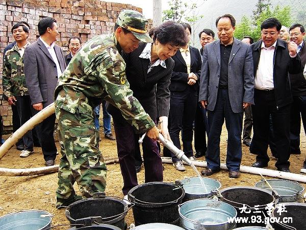 王主席在靖西弄猛屯考察边民生产生活情况,和消防官兵一同为灾区群众分水
