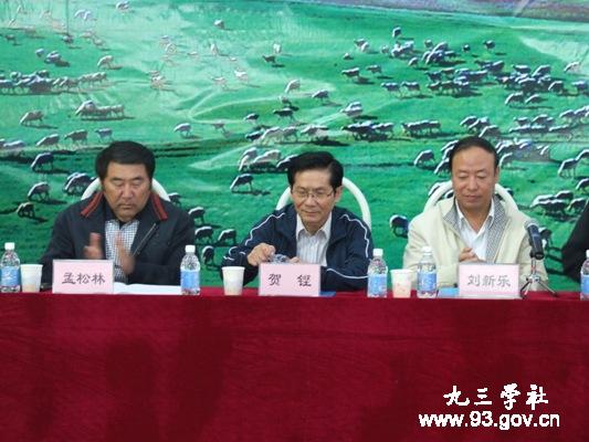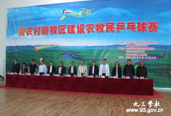9月3日,庆祝九三学社成立63周年“体彩杯”新农村、新牧区建设农牧民乒乓球赛在呼伦贝尔市陈旗体育馆开赛。 九三学社中央副主席贺铿为比赛开球。
