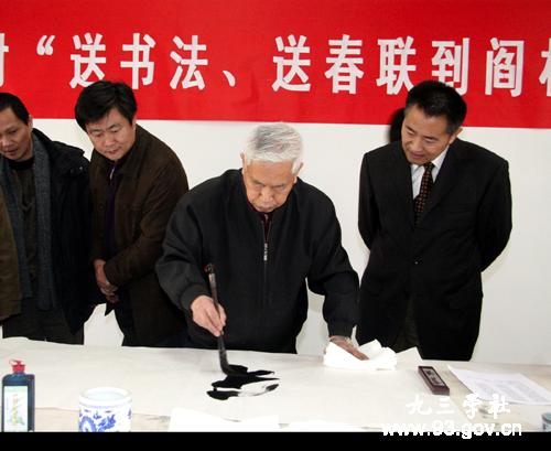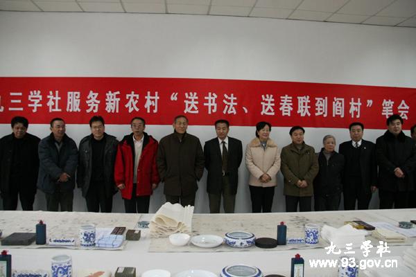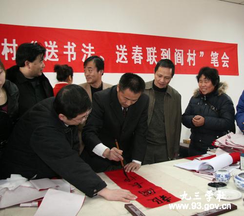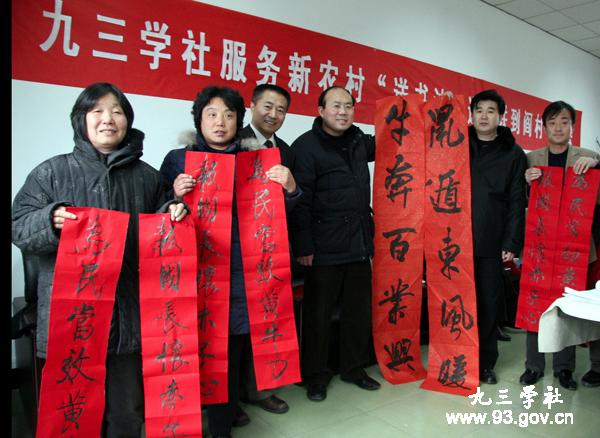 在送鼠年迎金牛的喜庆日子里,2009年1月18日上午,九三学社中央和九三学社北京市委及九三学社房山区支社联合在北京市房山区阎村镇开展九三学社服务新农村“送书法、送春联到阎村”笔会活动。九三学社中央副主席邵鸿出席活动并讲话。