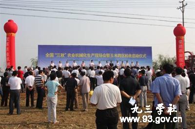 8月29日,农业部在山东济南召开全国“三秋”农业机械化生产现场会,同时举行全国玉米跨区机收启动仪式。100余台高性能玉米联合收割机奔赴全国各地玉米机收主战场。此举标志着全国“三秋”农业机械化生产的大幕正式拉开。九三学社中央副主席、农业部副部长张桃林出席会议并讲话。