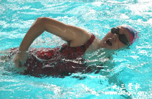 为了向一个新的高度挑战自我,唐小琪决定去游泳。偏瘫造成的足内翻和足下垂非常严重,不穿助行鞋很难行走。而这次于平滑的地面上,光着脚在众目睽睽下还是头一回。她忍着巨大的心里压力,乍着胆子,艰难地迈出了这可喜的第一步。水池边一圈白色的躺椅上,已躺满了玩累小憩的人们,唐小琪从他们面前走过时,无法控制那紧张的情绪,残腿的分量像是钉了钉子的木桩子那样沉重,那样深深地扎在地下难以抬起。紧张造成的肌张力增高,使脚内翻得像把镰刀,脚掌的外缘挨着地,每迈一步脚就钻心地疼。好在她从前水性也不错,一下水就游出了十几米。可回头看时,由于患侧劲儿小,两边用力不均,游出了一个大弧线。尽管如此,她仍然非常自豪和兴奋,陶醉在战胜自我的兴奋中。