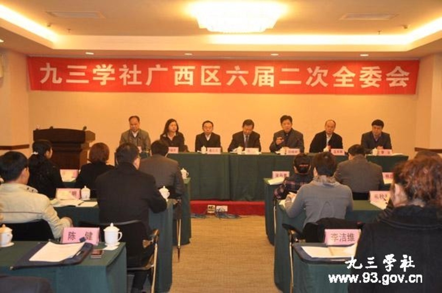 12月23日,九三学社广西区第六届第二次全委会议在南宁召开。自治区政协副主席、九三学社广西区委主委李彬,自治区党委统战部副部长田晓明出席会议并讲话。