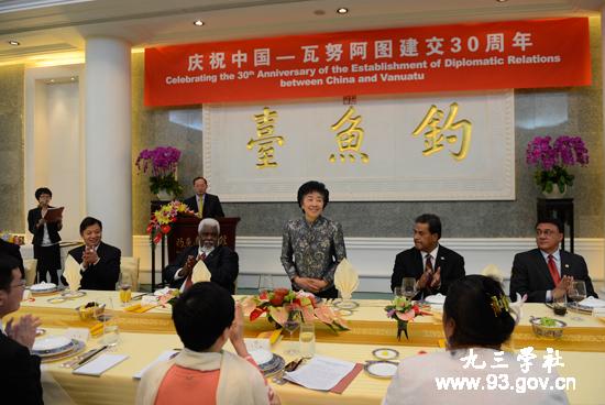 3月30日上午,中国人民对外友好协会在钓鱼台国宾馆举办招待会,庆祝中国与瓦努阿图建交30周年。全国政协副主席、九三学社中央副主席王志珍出席招待会。