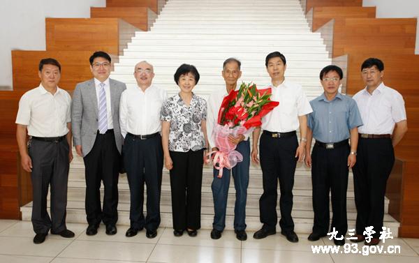 王志珍向杨恩泽献上鲜花,对杨恩泽在93岁高龄时仍坚持在科学研究一线表示敬佩,她说,杨恩泽是九三学社的骄傲,是每一位科技工作者都应该学习的楷模。