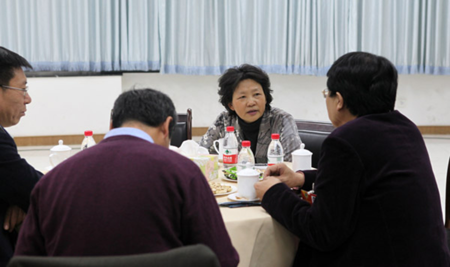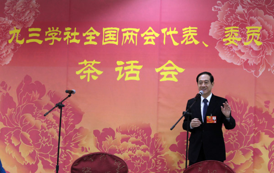 正在北京参加全国人大和全国政协十二届一次会议的100多位九三学社全国人大代表和政协委员,在紧张的“两会”间隙,来到九三学社中央机关“省亲”、团聚,交流议政建言体会,共叙党派工作友情。