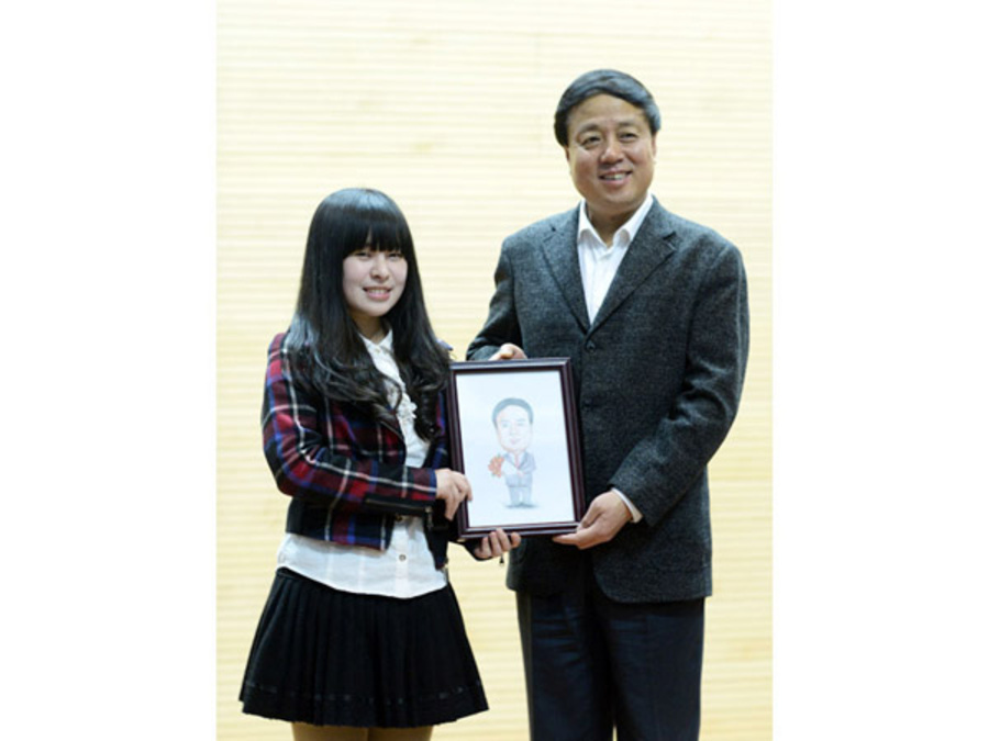 讲座结束后,武维华还现场回答了同学们的提问。学生代表向武维华赠送了漫画社同学创作的武维华画像。