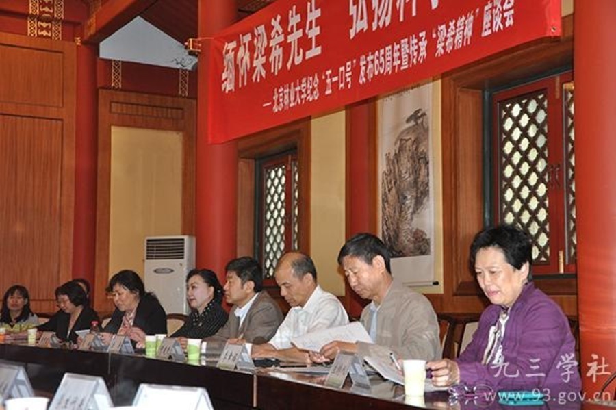 葱茏五月,绿影婆娑。北京林业大学实验林场会议室内座无虚席。“缅怀梁希先生 弘扬科学精神——九三学社北京林业大学支社纪念‘五一口号’发布65周年暨传承‘梁希精神’”座谈会正在热烈举行。北京林业大学党委副书记全海、统战部长黄中莉,九三学社中央宣传部、九三学社北京市委的有关领导出席会议。会议由九三学社北京林业大学支社主委谭红杨主持。
