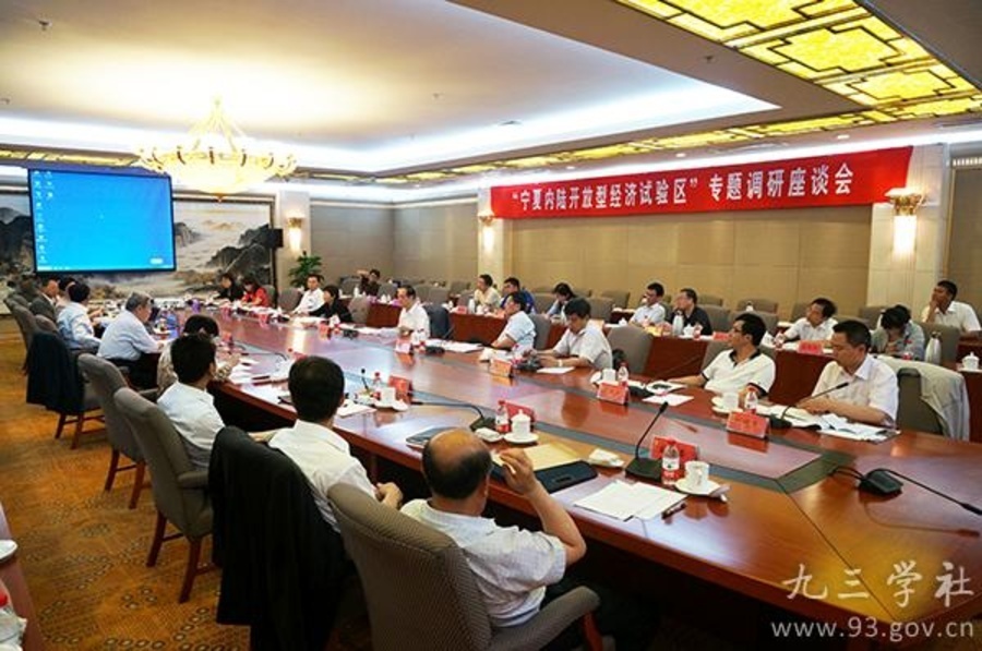 7月9日,调研组在银川召开“宁夏内陆开放型经济试验区”专题调研座谈会,宁夏自治区政协主席齐同生,中共宁夏自治区党委常委、常务副主席袁家军,宁夏自治区政协副主席张乐琴及自治区相关部门的领导出席会议。