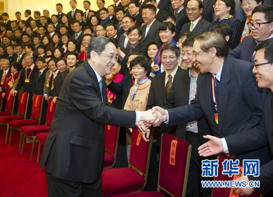2月21日,中共中央政治局常委、全国政协主席俞正声在北京人民大会堂会见出席欧美同学会•中国留学人员联谊会第七届理事会第一次会议的全体理事。全国政协副主席、九三学社中央主席、欧美同学会•中国留学人员联谊会第六届理事会会长韩启德参加了会见。
