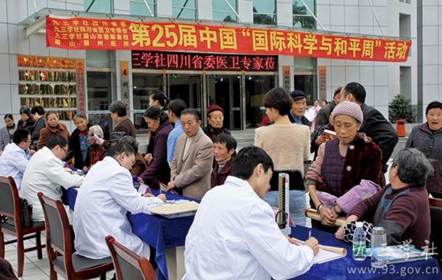 在眉山医院广场,九三学社四川省委医卫专门委员会副主任唐德厚和委员何永生、陈勇、陈宇洁、廖琼、郑碧霞、赵海明、尹智、刘卫东、吴雪艳、孟繁烨等专家,他们早早来到这里进行现场义诊。前来义诊及咨询的人员络绎不绝,如同赶集一样。他们将专家们团团围住,有的就诊,有的接受推拿治疗,有的咨询病情。一直到中午,义诊现场依然人头攒动。工作人员在现场发放了400本由九三学社中央主席韩启德作序的《新农村健康卫生手册》。活动受到广大群众的热烈欢迎,大家觉得,活动既解决了基层群众的身体疾患,又给人民群众传播科学的健康知识,热切期盼这样的活动能经常开展。