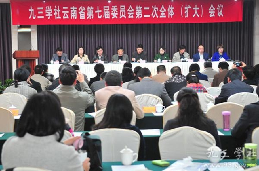 九三学社云南省第七届委员会第二次全体(扩大)会议于2月16日至18日在昆明举行。会议学习贯彻了中共十八届三中全会精神、省政协十一届二次会议和省人大十二届二次会议精神;审议了九三学社云南省第七届常务委员会2013年工作报告并通过了相关决议;并对社省委2011年至2013年度社务工作先进基层组织和先进社员进行了表彰。社省委主委曾华,副主委周浙昆、周勇、李学林、常敏、解丽平、王云月,秘书长牟宝恒出席会议。
