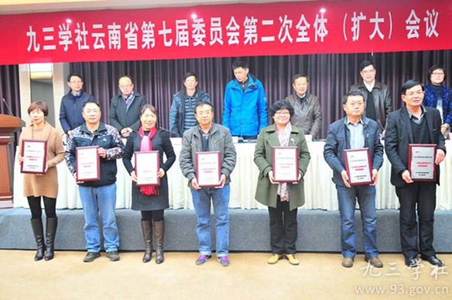 会议还对2011年至2013年在社务工作中取得优异成绩的基层组织和社员进行了表彰。社昆明市五华区委员会、社开远市支社、社曲靖市第六支社、社临沧市委筹备组等22个基层组织获“先进基层组织”称号,马丽丽、刘庆、鲁国政、杨立波等41名社员获“先进社员”称号。