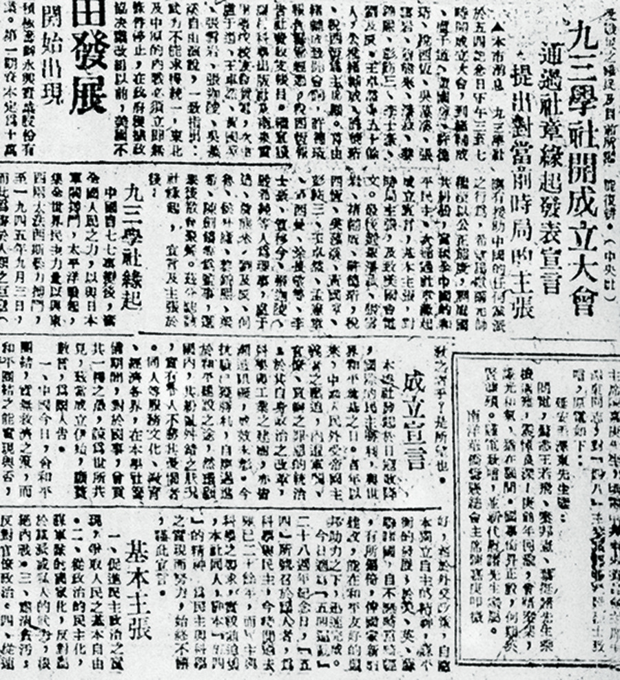 1946年,5月4日,九三学社正式成立,为革命的胜利、新中国的诞生呐喊助力。