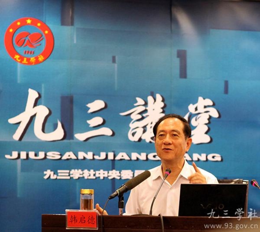 4月8日,九三学社中央第22期九三讲堂开讲。本期讲堂的主讲人为全国政协副主席、九三学社中央主席、北京大学医学部主任、中科院院士韩启德,他系统阐释了医学技术应用不当引起的过度医疗这样一个社会普遍关注的热点问题。讲座由九三学社中央常务副主席邵鸿主持,九三学社中央副主席赖明、丛斌、印红、原副主席王志珍出席讲座。
