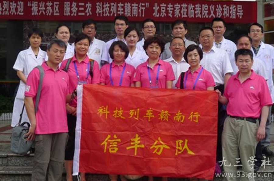 2014年5月16日下午,由科技部、中宣部、卫生部和计划生育委员会、国家粮食局和江西省人民政府等10多个部委共同开起,满载100余名来自医卫、农业、工业、知识产权、金融、地质等多领域专家和专业技术人员的科技列车准时发车,奔向共和国的摇篮、革命苏区江西瑞金,开展多方位、多层次、多内容、多形式的综合性科技帮扶活动。九三学社北京市委科技服务工作委员会副主任甄燕昌,委员任蕾、曹建荣、宣立学、钟光珍等14名专家参与其中。