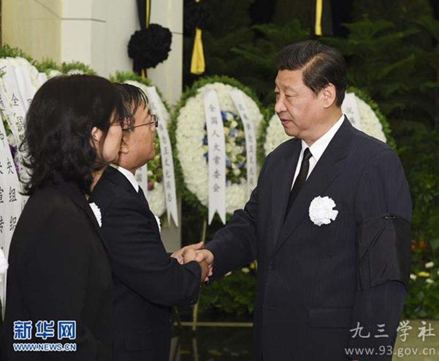 上午10时许,习近平、张德江、俞正声、刘云山、王岐山、张高丽等,在哀乐声中缓步来到王文元同志的遗体前肃立默哀,向王文元同志的遗体三鞠躬,并与亲属一一握手,表示慰问。