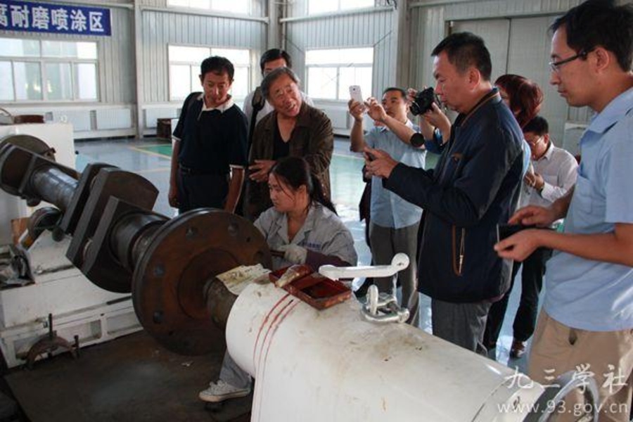 交流环节结束后,与会人员一同参观了再制造生产车间,彭兴礼院长对各种设备的操作流程进行了演示讲解,大家对奥宇可鑫的铸件缺陷修补技术、胶接与粘涂技术、零件柔性修复技术等留下了深刻印象。