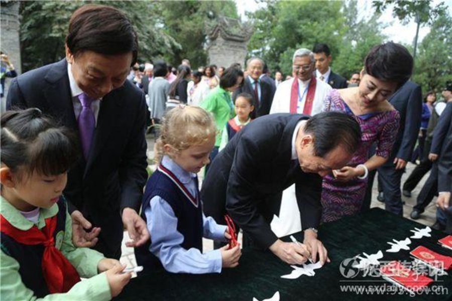 据悉,韩启德还出席了同日举行的和平艺术展开幕式暨“一缕阳光工程”启动仪式以及2014年国际和平日和平祈福活动。