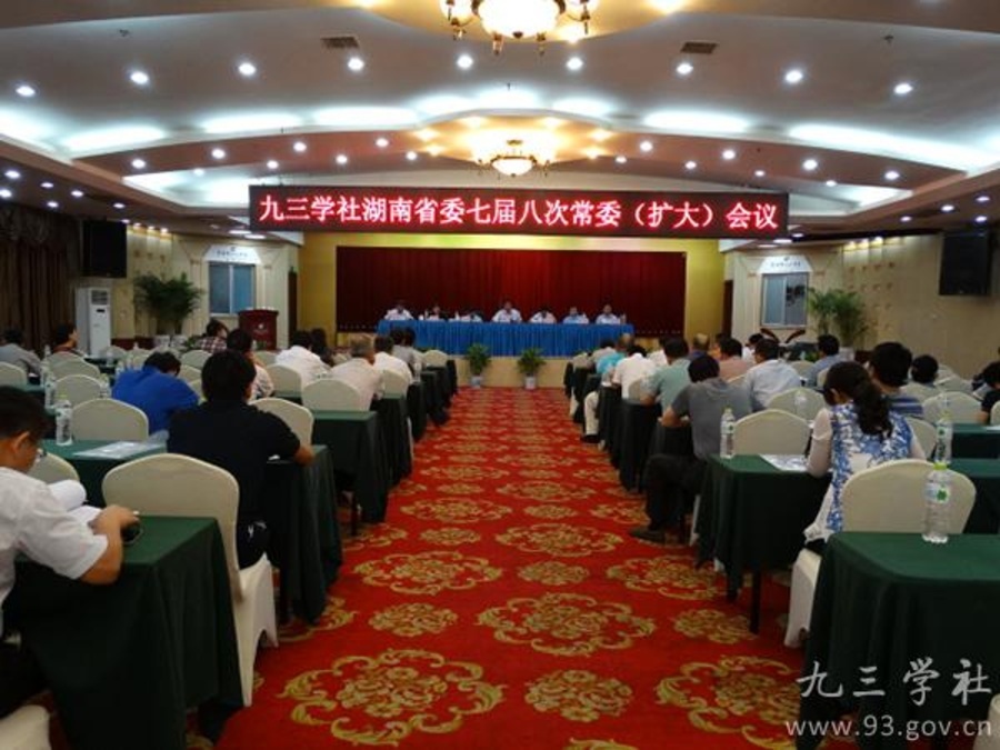 7月12日下午,九三学社湖南省委七届八次常委(扩大)会议在长沙召开,会议围绕“坚持和发展中国特色社会主义学习实践活动”的主题,传达学习了九三学社中央十三届七次常委会议精神,听取了坚持和发展中国特色社会主义学习实践活动主题宣讲,通报了九三学社湖南省委2014年上半年工作情等事项。