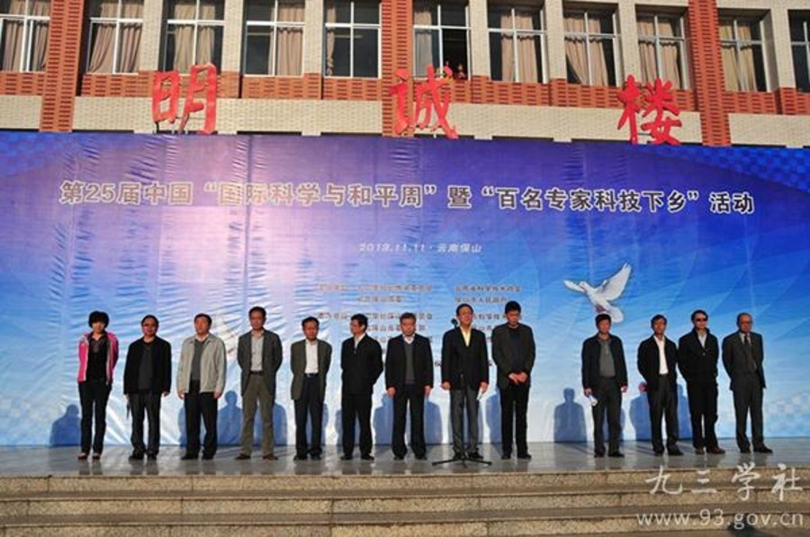 11月11日上午,由九三学社云南省委员会、云南省科学技术协会、保山市委市政府联合举办的第25届“国际科学与和平周”暨“百名专家科技下乡”活动在保山学院明诚楼前广场启动。九三学社中央副主席、中国科学院院士武维华,中国中科院院士、九三学社中央委员、吉林省科协主席冯守华,云南省政协副主席、九三学社云南省委主委曾华等出席启动仪式。