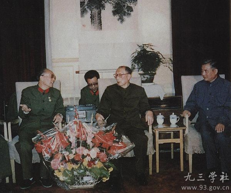1984年10月16日邓稼先与聂荣臻、张爱萍庆祝第一颗原子弹爆炸成功二十周年。