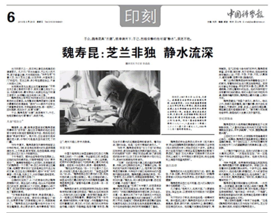 于众,魏寿昆具“兰德”,桃李满天下﹔于己,性格安静的他可谓“静水”,深流不绝。