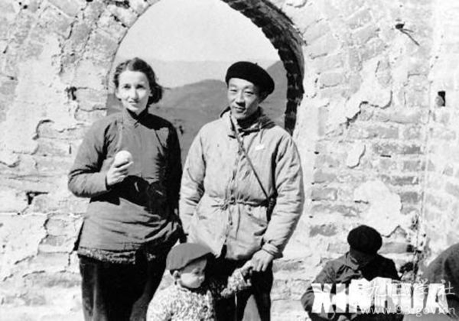 1959年,黄昆和夫人李爱扶(英国人)游览北京长城。