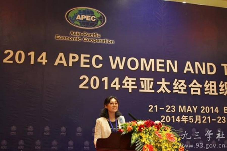 2014年亚太经合组织(APEC)妇女与经济论坛于5月21日-23日在京举办。本次论坛以“凝聚女性力量,繁荣亚太经济”为主题,设三个分议题,即“妇女与绿色发展”、“妇女与区域经贸合作”、“政策支持与妇女经济赋权”。受全国妇联推荐,九三学社社员、九三学社北京市委文化委委员、东城区委委员、东城区科技园区支社主委许莉出席5月23日举办的妇女与智能科技研讨会,并作为8个发言人中的唯一中方代表进行了主旨发言。