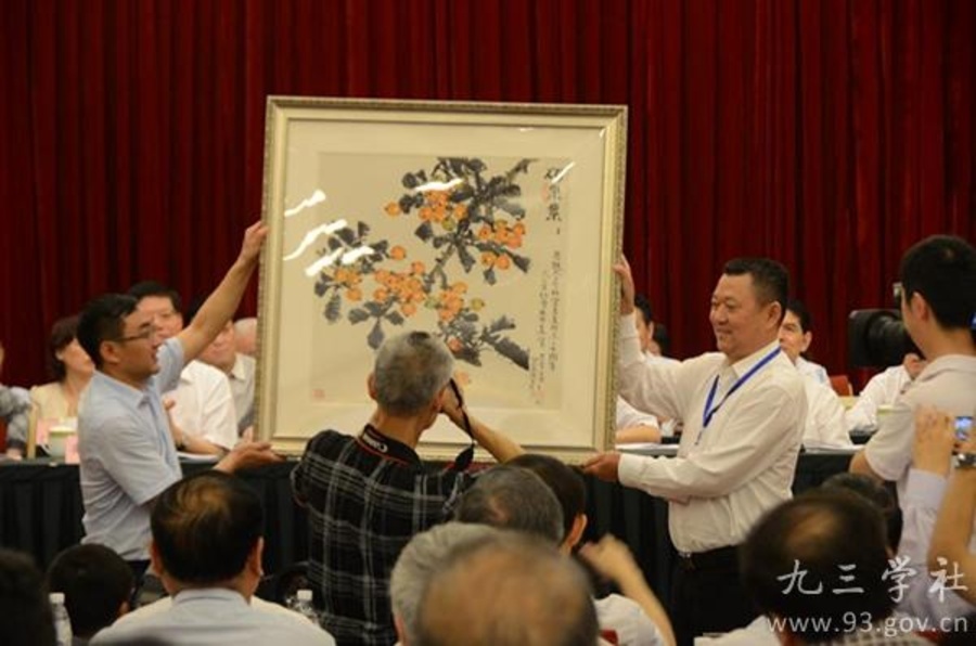 杨开奎代表九三学社重庆市委赠送题名为“硕果累累”的精美画作,蕴涵着兄弟省市社组织对九三学社四川省委的美好祝愿!