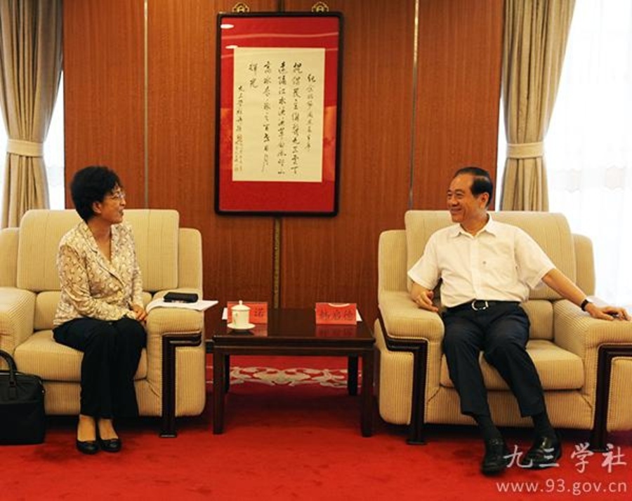 8月22日,全国政协副主席、九三学社中央主席韩启德在九三学社中央机关会见中国人民大学党委书记靳诺一行。九三学社中央副主席兼秘书长印红参加会见。