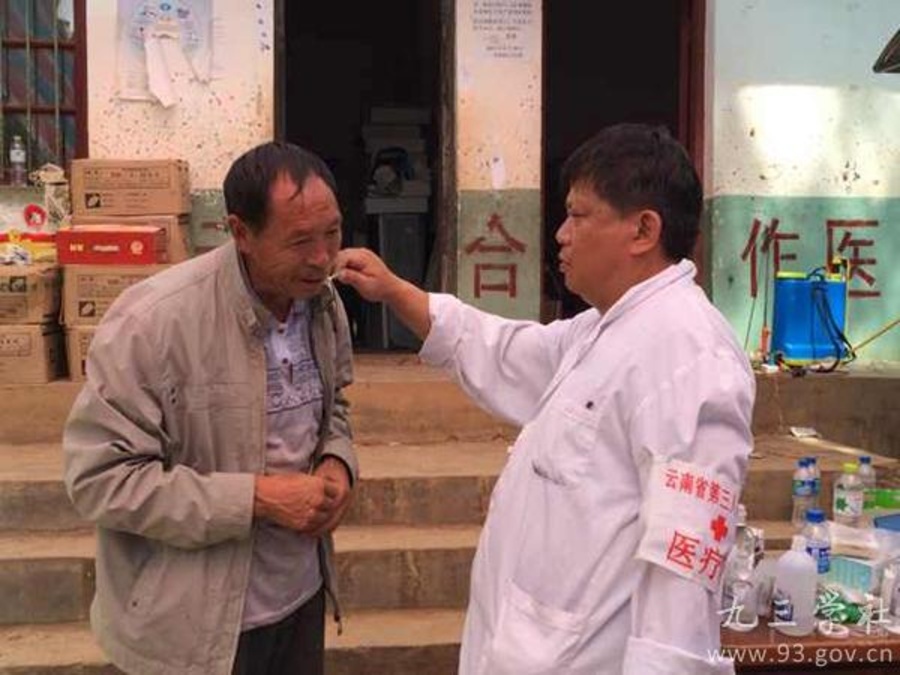 曲靖市妇幼保健院医务科负责人夏灯才克服滑坡路堵、余震频发、下雨泥泞等困难,徒步20多公里到鲁甸银屏村重灾区,开展救援、巡诊、转移病人、伤口处理、防疫等工作。